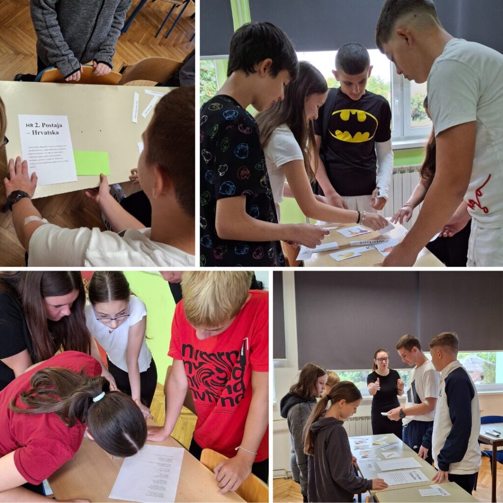 Učenici od 5. do 8. razreda zajednički su sudjelovali u aktivnosti Escape room pod nazivom Putovanje kroz Europu. Rješavanjem zagonetki ”putovali” su kroz Hrvatsku, Mađarsku, Njemačku i Englesku te su na kraju skupili sve tragove i ”otključali” mapu Europe. Osim toga, grupno su osmislili logo Europskog dana jezika te ponovili znanje o zastavama i glavnim gradovima europskih država. Kako nam je bilo pogledajte u nastavku.