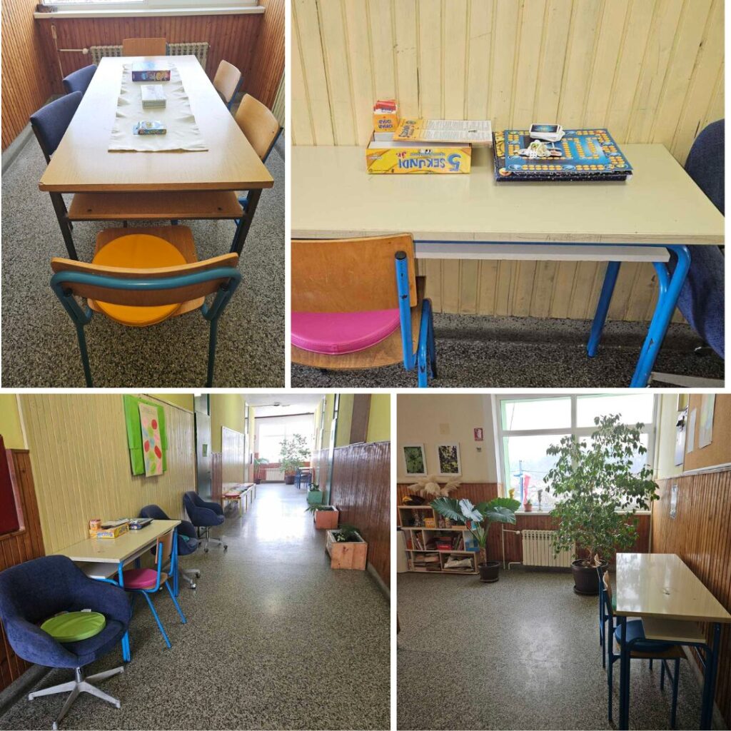 U hodniku Područne škole u Batini uredili smo kutak za društvene igre koji će učenicima služiti za igru i druženje tijekom odmora. Kutak potiče razvoj socijalnih vještina, suradnju, strpljenje i pozitivnu komunikaciju među učenicima.