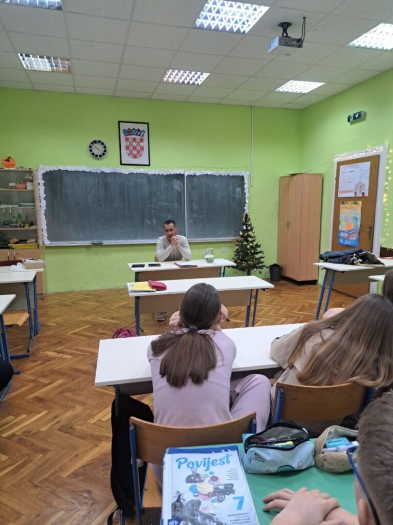 Marijan Gubina učenicima je govorio o svom životu u logoru za vrijeme Domovinskog rata, o roditeljskoj ljubavi, o vršnjačkom nasilju i žrtvovanju. Vršnjačko nasilje objasnio je na primjeru dobrog i lošeg psa – dobro ponašanje hrani dobrog psa, a ruganje, omalovažavanje i sve ostale vrste nasilja hrane lošeg psa.
